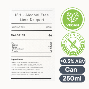 Natural flavours and extracts like juniper and lime were used to make this Gin Tonic alcohol free. This has created an attractive aroma of fresh citrus fruit and botanical herbs like juniper and rosemary. A fresh and soft bitter taste with hints of gin-flavours as you may expect. A pleasant sparkling taste provides a good harmony and balanced aftertaste.